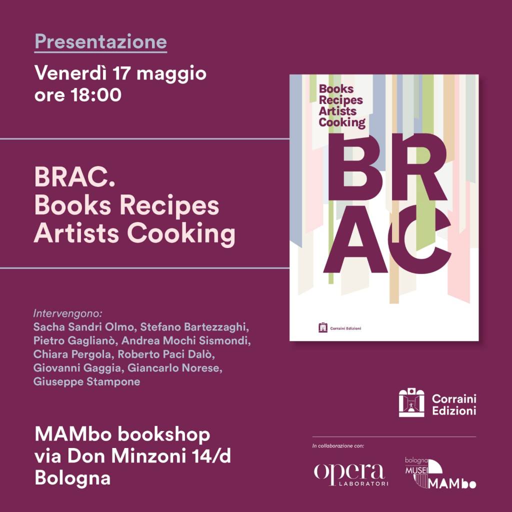 Questo volume, edito da Corraini, raccoglie 80 ricette, nate e servite all’interno della BRAC, affidate alla libera interpretazione di 78 artiste e artisti contemporanei. “Fra loro” come scrive Pietro Gaglianò “ci sono tutti gli ospiti di Scripta, assieme agli amici amati, frequentatori assidui della libreria e dei suoi programmi, alle persone che vi sono passate e che rimangono sempre presenti, assieme ad altre che non sono mai state alla Brac ma che, per legami virtuosi o virtuali, per amicizia o per affinità, costituiscono una parte fondante del suo universo di arte, libri e parole.”
