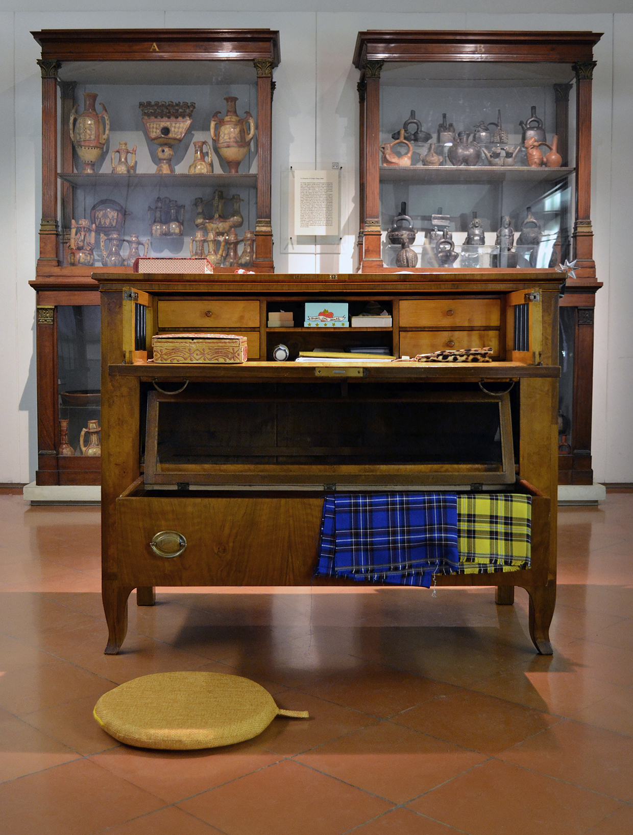 Musée de l’OHM – Opening Here Museum è un museo-opera fondato all’interno di un comò del XIX secolo. OHM si trova nella sala 2 del Museo Civico Medievale di Bologna, assieme alle collezioni Aldrovandi, Cospi, Marsili e Palagi, una sorta di wunderkammer eterogenea e trasversale ad ogni classificazione. Questa collocazione ha permesso di creare un punto di vista contemporaneo nel cuore della tradizione materializzando la complessità dei rapporti tra opera e museo.